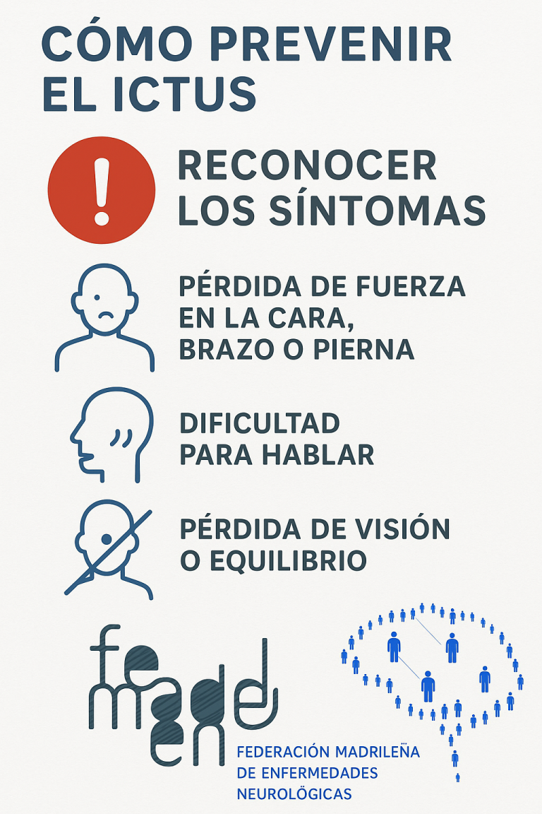 Con motivo del Día Mundial del Ictus, desde la Federación Madrileña de Enfermedades Neurológicas (FEMADEN) queremos recordar la importancia de la prevención, la atención temprana y la rehabilitación integral, tres pilares esenciales para reducir el impacto de esta enfermedad neurológica.